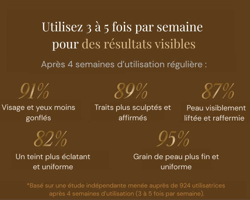 Avec une utilisation régulière, la peau gagne en fermeté et en élasticité. Les contours sont plus nets et l’effet lift devient durable.