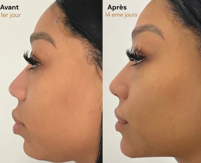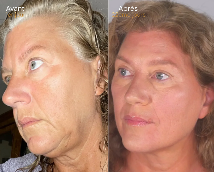 Mâchoire plus définie, ridules adoucies, contour des yeux moins gonflé.